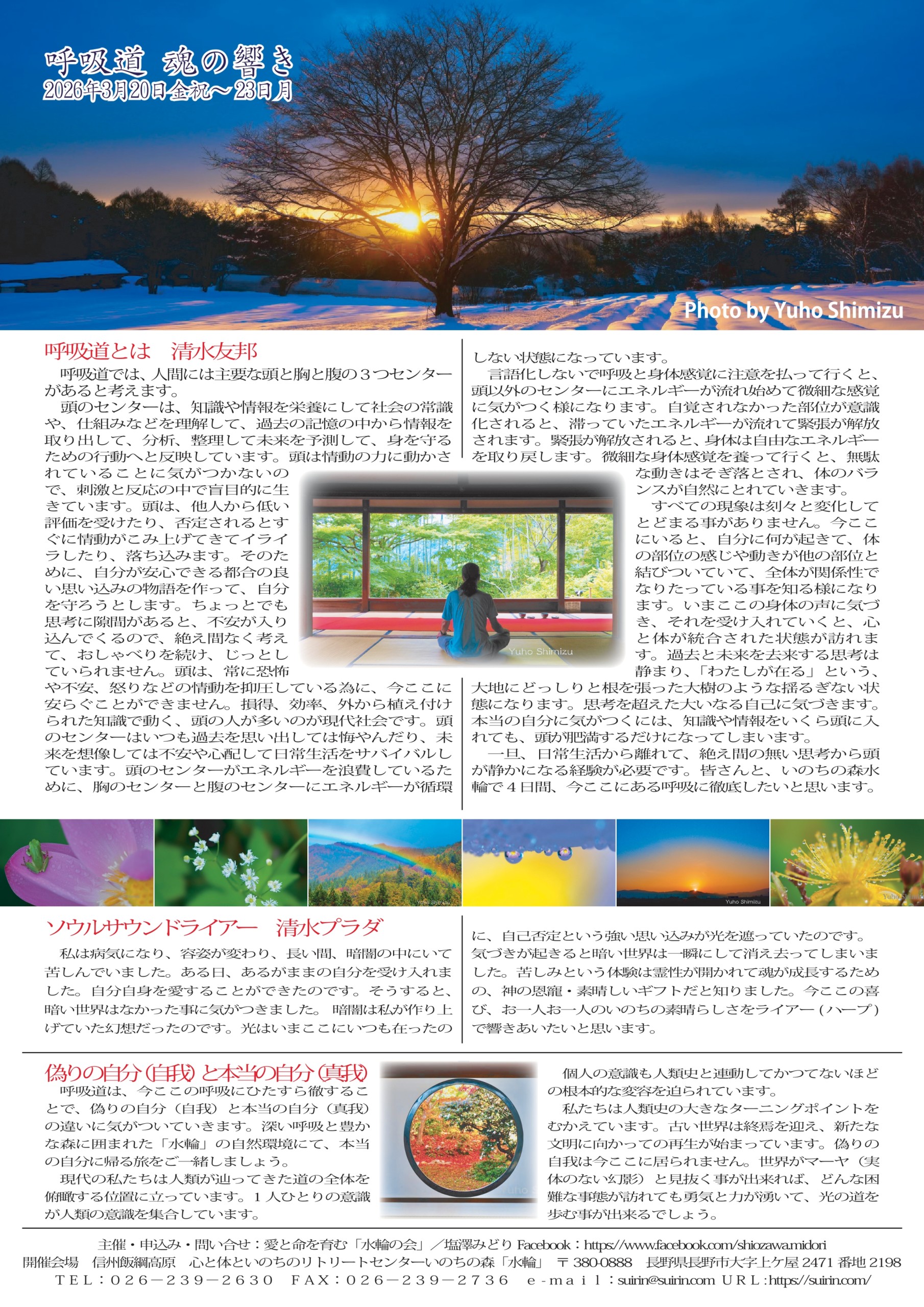 ● 会 場 信州飯綱高原 心と体といのちのリトリートセンター いのちの森「水輪」