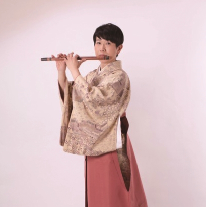 自然の音と一つになる素晴らしい音色を奏でる横笛奏者